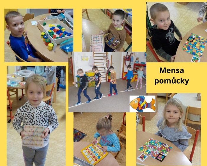 V listopadu 2023 jsme ve třídě Rybička s dětmi zkoumali nové mensa pomůcky a hry, jenž mají rozvíjet jejich fantazii, logické myšlení, prostorovou představivost, jemnou motoriku, poznávání barev, tvarů a porovnávání velikosti a detailů.