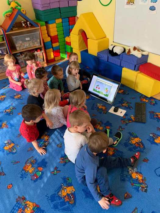 I u těch nejmenších dětí využíváme PC. Děti se seznamují s interaktivními programy a PC slouží také jako názorná ukázka videí, obrázků a audio nahrávek.